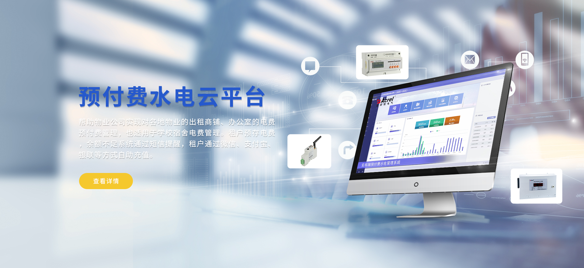 安科瑞提供的解決方案包括Acrel-EIoT能源物聯網云平臺、變電所運維云平臺、安全用電管理云平臺、環保用電監管云平臺、智慧消防云平臺、能源管理云平臺、工業企業能源管控平臺、遠程預付費云平臺、餐飲油煙監管云平臺、電動汽車/電瓶車充電樁收費管理云平臺、電力監控/無線測溫系統、電能質量治理系統、電氣火災監控系統、消防設備電源監控系統、防火門監控系統應急照明和疏散指示系統、智能照明控制系統、醫用隔離電源絕緣監測系統等,幫助用戶實現能源智能化、可視化、精細化管理,提高用能效率和用能安全,為企業節能降耗和實現能源數字化建設提供數據服務。